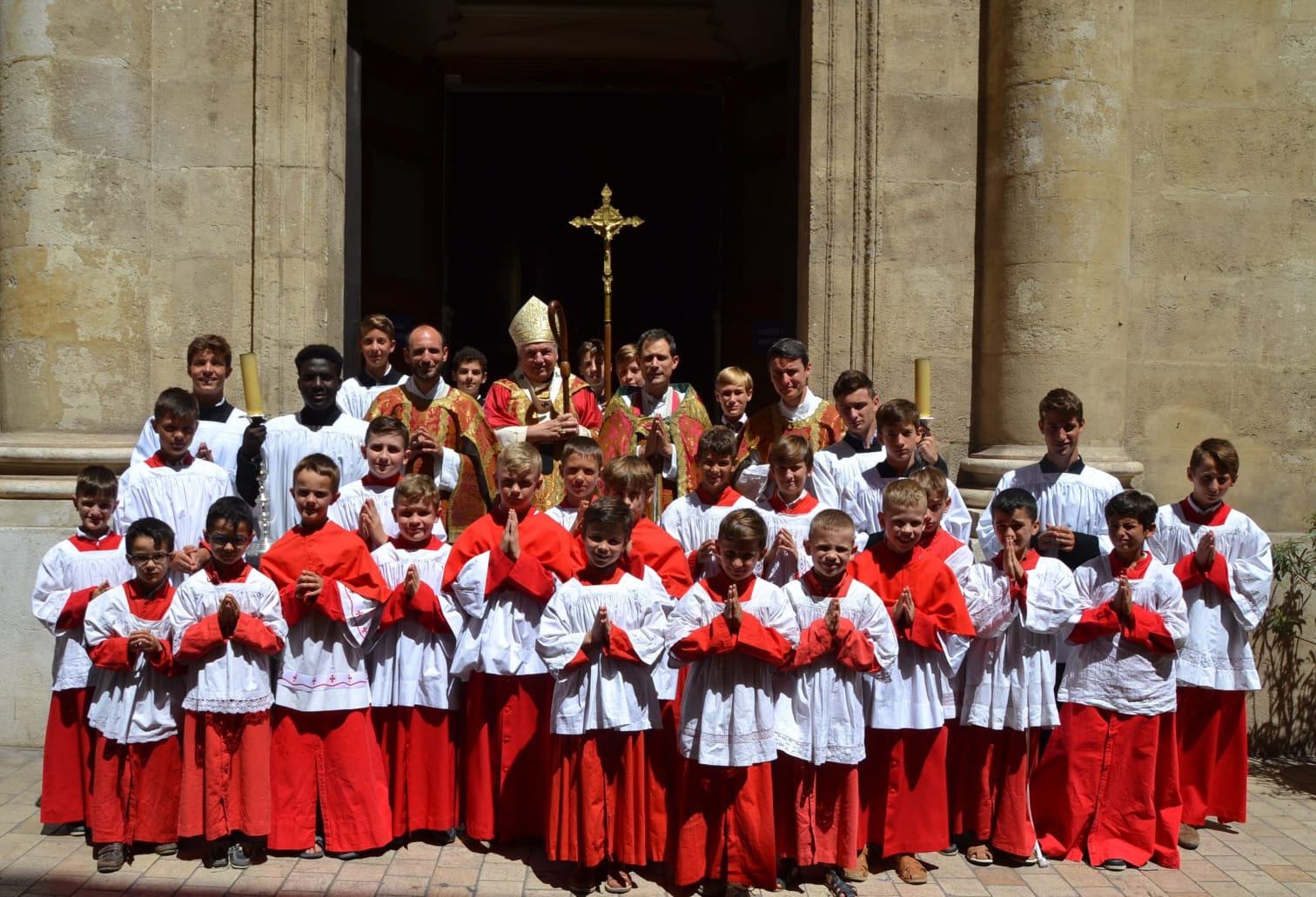 Les servants de chœur de Saint-Charles sont encadrés par deux prêtres des Missionnaires de la Miséricorde Divine.